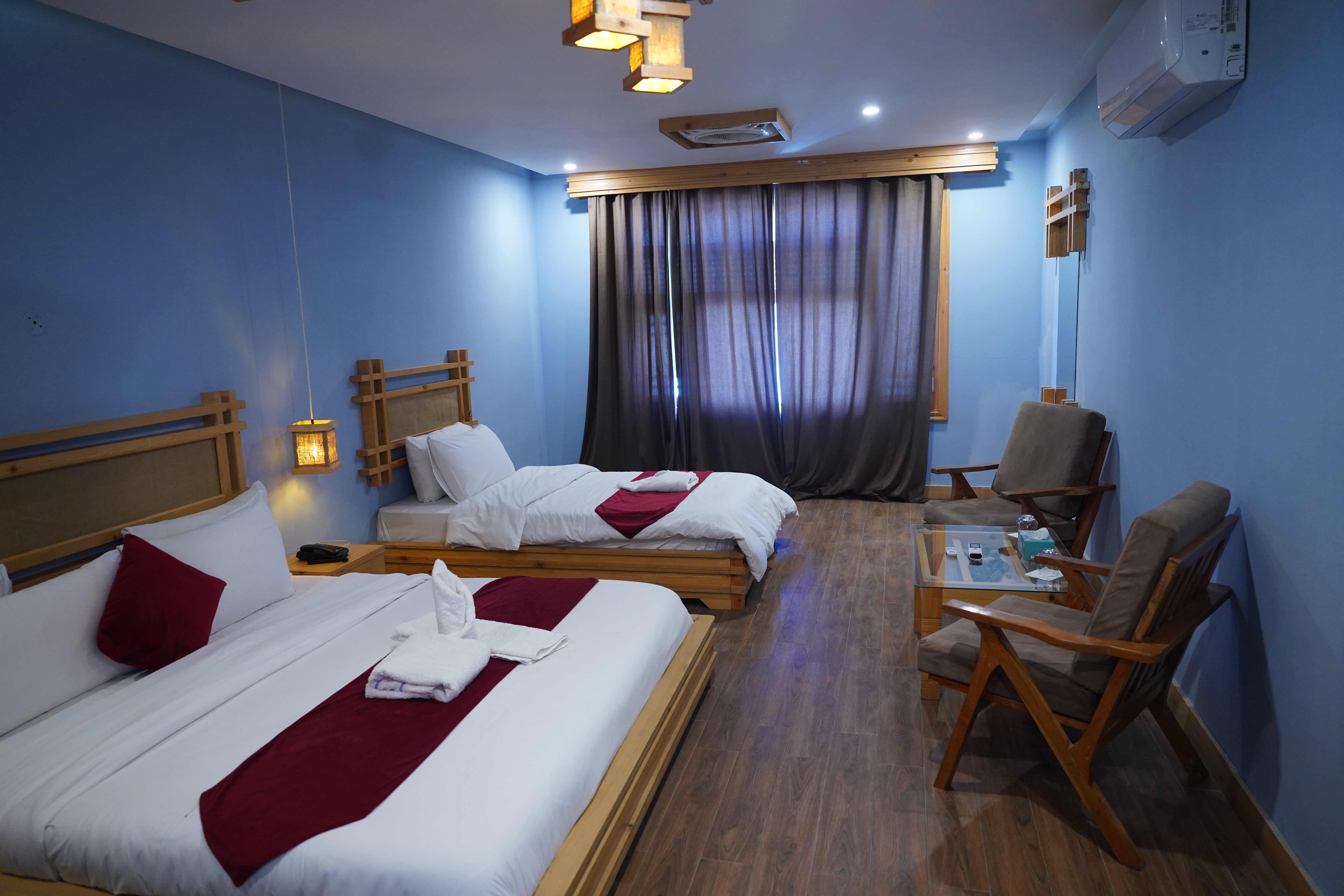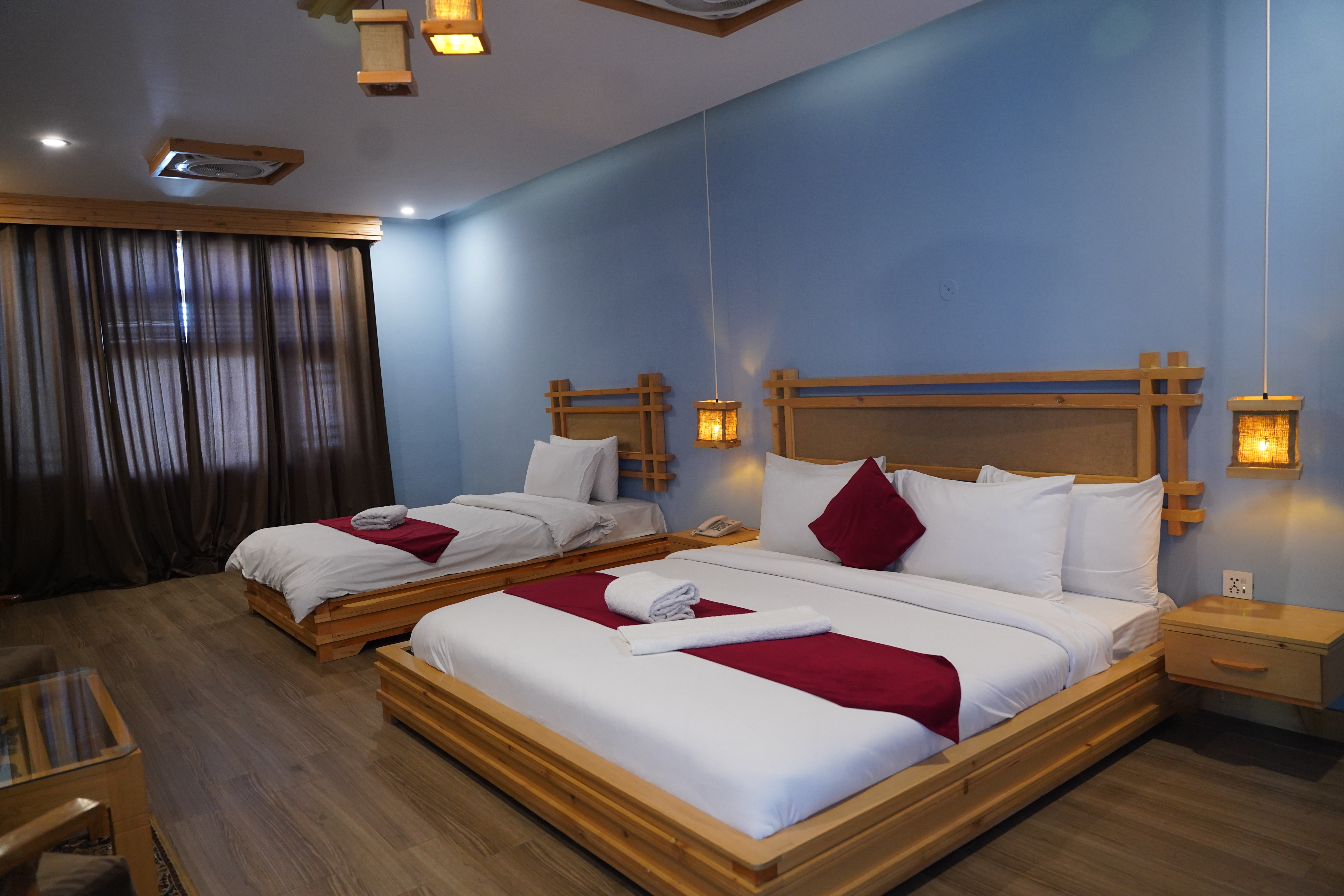 Each room at Kesar Palace Hotel & Restaurant in Skardu offers a comfortable stay with modern amenities and scenic views. Guests enjoy private baths, tea/coffee facilities, free Wi‑Fi, and a relaxing interior for a perfect retreat.